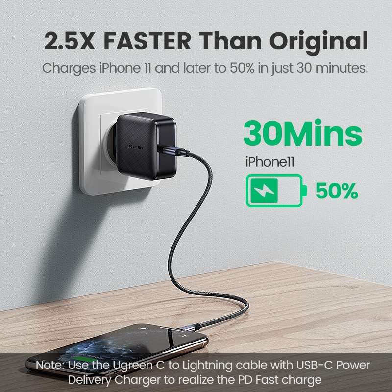 Charges iPhone 11 and later to 50% in just 30 minutes