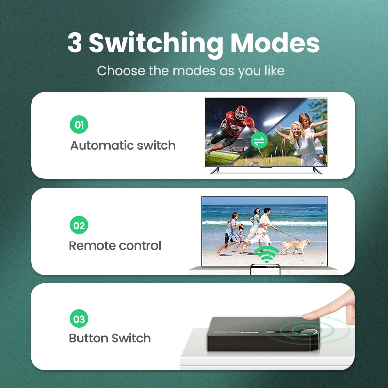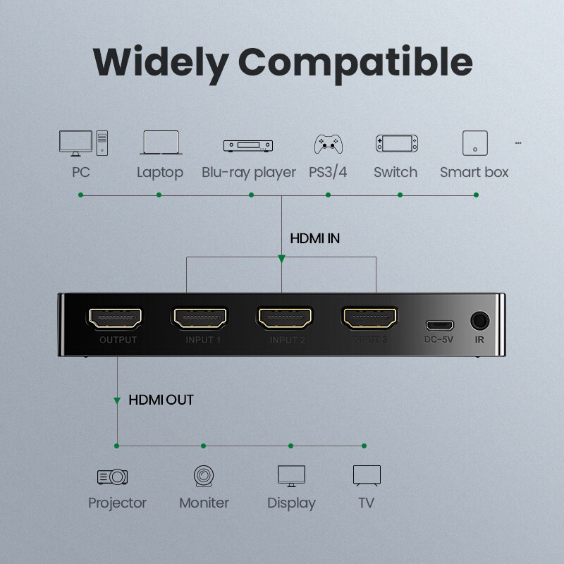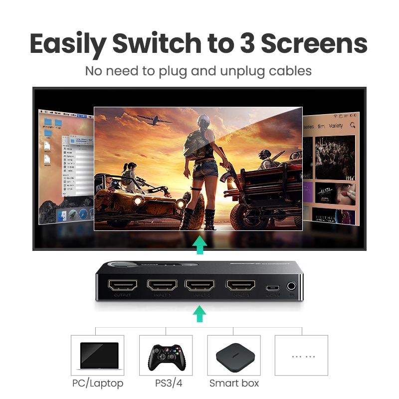 Ugreen 3 ports HDMI Switch is a high-performance HDMI switcher,it
