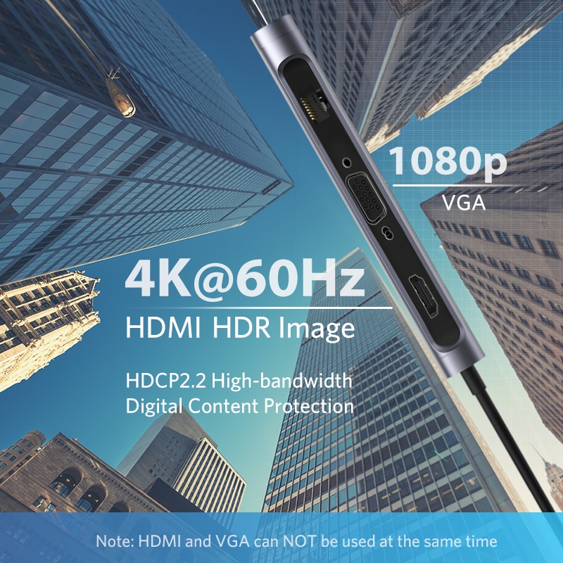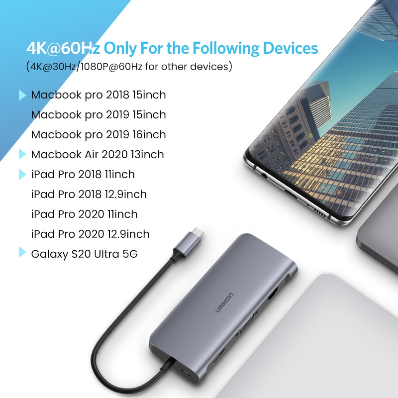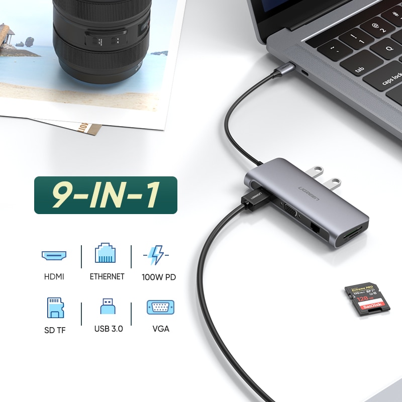 UGREEN Newest USB C TO HDMI 4K@60Hz 9-IN-1 HUB:Â HDMI+VGA+RJ45+SD / TF + USB3.0x3 +PD